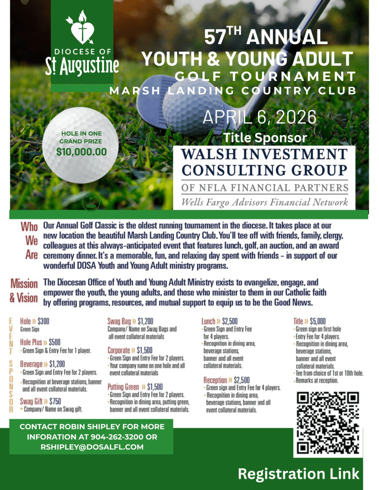 Please join us at Marsh Landing Country Club for a special golf tournament benefiting the Office of Youth and Young Adult Ministries for the Diocese of St. Augustine.
